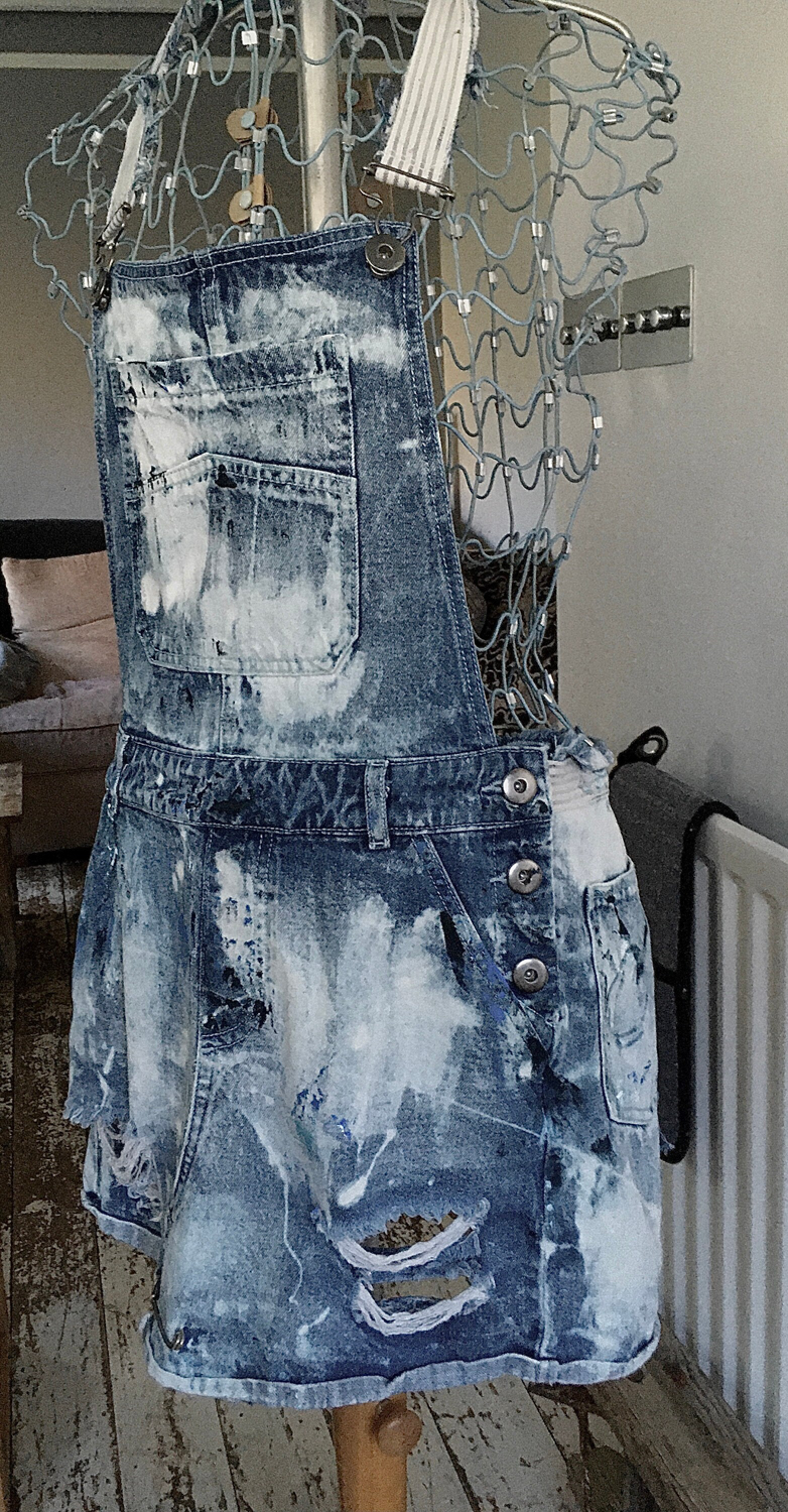 Beautifully distressed, frayed and stained pair of vintage overalls